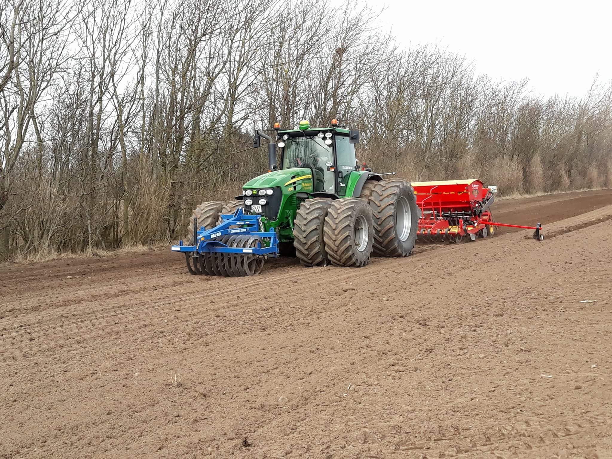 - Såning af korn med en 4 meter Vaderstad Rapid med både gødning og frø udstyr.